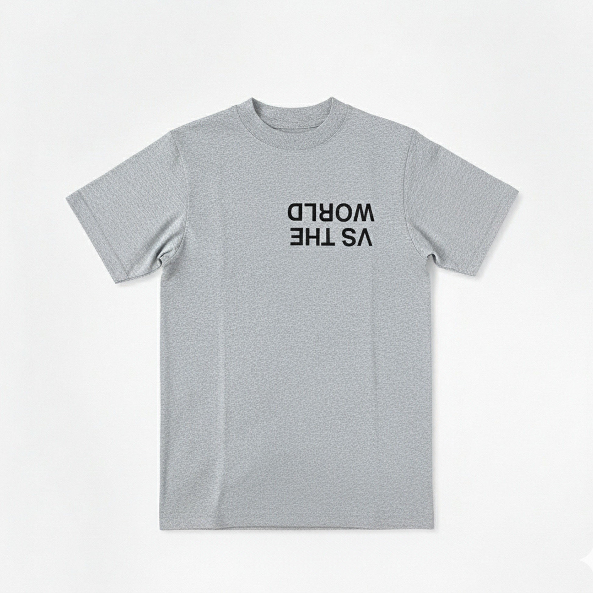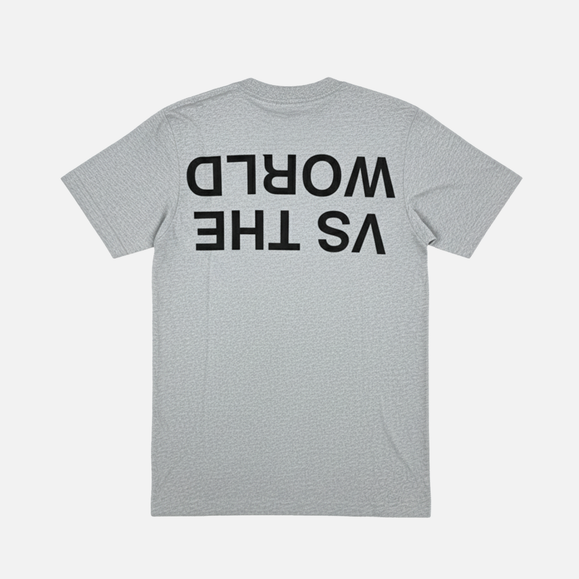 Pulled from the archives, the Upside Down Tee is a conceptual piece built on a single, powerful idea: a world sometimes seen in reverse. This tee transforms that bold statement into a focused design element. The classic cut is engineered for everyday versatility. Branding is minimal and intentional, the inverted "VS THE WORLD" text is applied smaller on the chest and larger on the back.